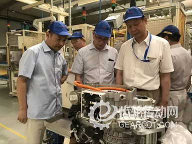 上海交通大學汽車工程研究院教授張建武(右一)等代表參觀萬里揚在蕪湖的工廠
