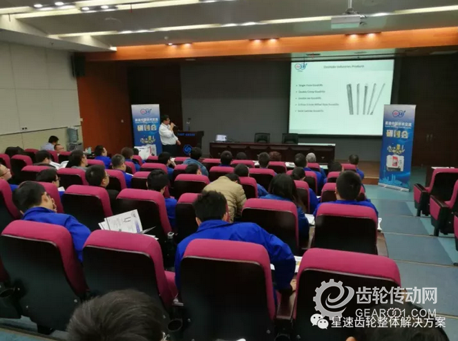 上圖為星速中國齒輪加工刀具產(chǎn)品經(jīng)理--Robin Yu 于佳先生在為與會者講解滾刀、剃刀等新材料新技術(shù)的齒輪加工刀具的細節(jié)和應用情況