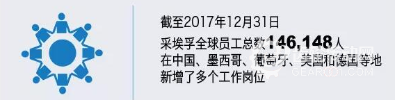 截至2017年12月31日,采埃孚全球員工總數(shù)為146,148人(2016年員工總數(shù)為136,820人)。新增的工作崗位大多位于中國(guó)、墨西哥、葡萄牙、美國(guó)以及德國(guó),他們主要在主動(dòng)及被動(dòng)安全技術(shù)事業(yè)部、電驅(qū)動(dòng)事業(yè)部、乘用車底盤技術(shù)事業(yè)部和乘用車傳動(dòng)技術(shù)事業(yè)部工作。其中,擔(dān)任研發(fā)工作的員工在全球范圍內(nèi)達(dá)到了1,700人左右。