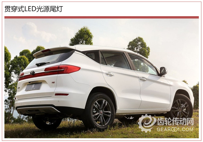 新車側面上下兩條腰線的設計,使得該車立體感十足。尾部造型棱角分明,尾箱中間凸起的棱線配合全新設計的貫穿式LED尾燈,提升該車運動氣息;這款SUV下包圍造型較為簡潔,牌照架上方線條的應用使得該車尾部肌肉感十足,配以底部銀色護板,整體彰顯運動范兒。