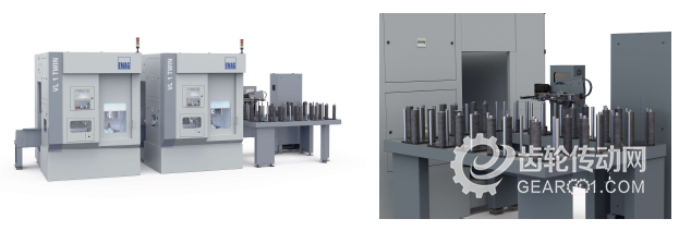 為充分利用機(jī)床的生產(chǎn)率,埃馬克還采用高效的 TWIN 方法來提供更加先進(jìn)的解決方案。例如VL 1 TWIN Line,也就是使用 TrackMotion 工件輸送系統(tǒng)相互連接在一起的兩臺 VL 1 TWIN 機(jī)床。這樣,便可以在 OP 10 和OP 20 中同步在兩個工件上從兩側(cè)進(jìn)行加工。通過這種方式,可以將整個OP 10/OP 10 和 OP 20/OP 20 加工過程的節(jié)拍時間降到低于 20 秒——這個節(jié)拍時間極短,在對行星齒輪等工件進(jìn)行軟加工時,可以顯著降低單件成本。這套系統(tǒng)還配備了適用于毛坯件和成品件的大型工件存儲器。所使用的堆垛機(jī)托盤已經(jīng)過優(yōu)化配置,因此可在極小的空間內(nèi)存放相對更多的工件。正如其名稱所述,這可以通過將工件上下疊放(即英語的Stacked,堆垛)來實現(xiàn)。
