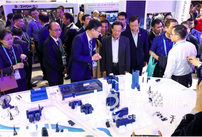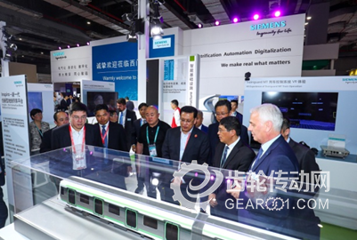 西門子大中華區首席執行官赫爾曼(Lothar Herrmann)陪同國務院國有資產監督管理委員會主任肖亞慶參觀西門子展臺