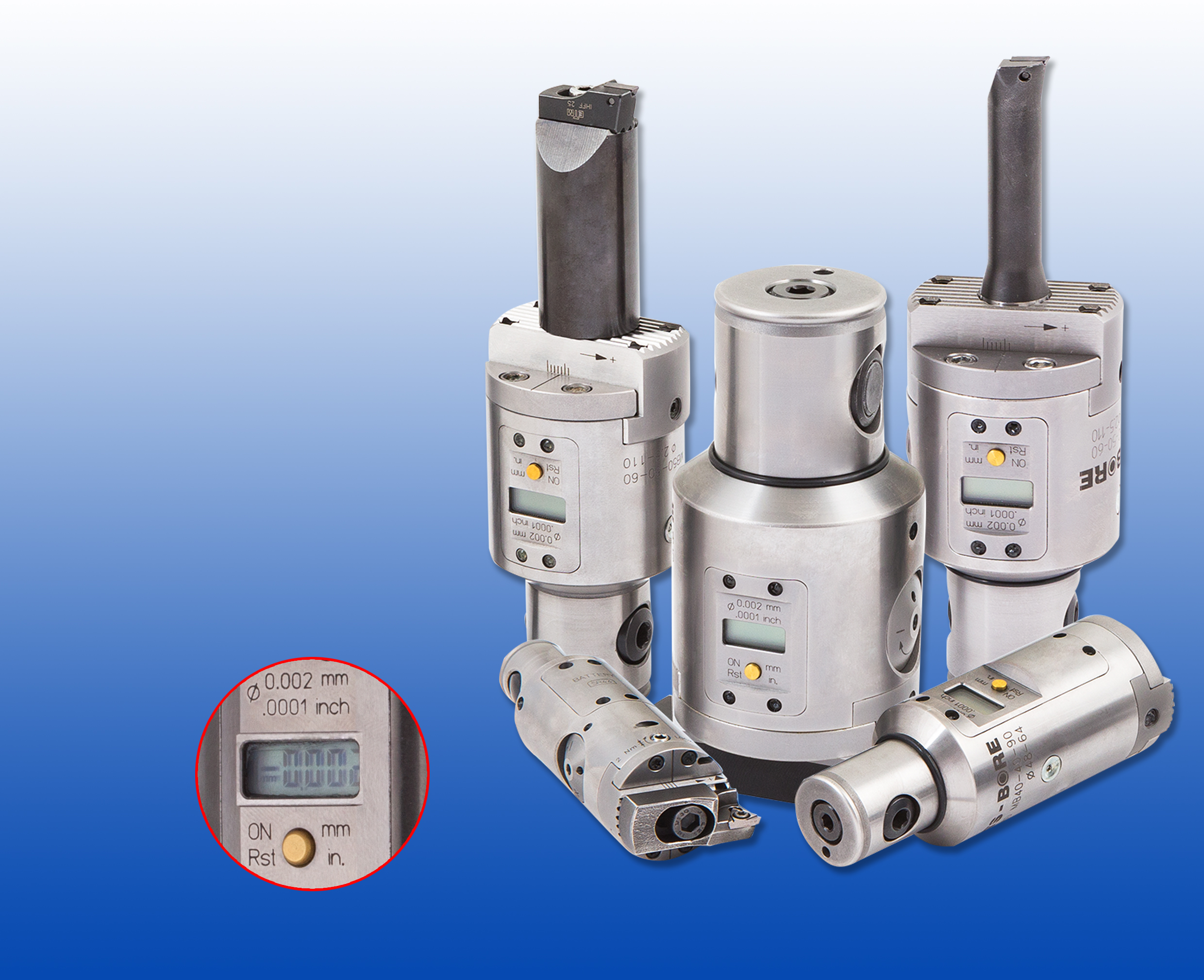以mm/inch有效值清晰地顯示數據有助于避免人為錯誤,微調精度高達Ø0.002 mm (.0001 in),預調操作簡便,徑向調整范圍為5 mm (.2 in),最大冷卻液壓力為40 bar。數顯裝置具有防水效應,采用了“硬涂層技術”的鏜刀體耐受力更佳。