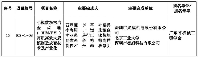 4月15日上午,廣東省科技創(chuàng)新大會(huì)在廣州召開(kāi),會(huì)上頒發(fā)了2021年度廣東省科學(xué)技術(shù)獎(jiǎng)。由深圳市兆威機(jī)電股份有限公司、北京工業(yè)大學(xué)和深圳市密姆科技有限公司聯(lián)合研發(fā)的項(xiàng)目“小模數(shù)粉末冶金齒輪(MIM/PM)高質(zhì)高效大規(guī)模制造成套技術(shù)及產(chǎn)業(yè)化”喜獲2021年度廣東省科技進(jìn)步獎(jiǎng)一等獎(jiǎng)。