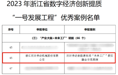 據悉,本次優秀案例征集及評選活動旨在深入實施數字經濟創新提質“一號發展工程”,強化典型引路,著力遴選并推廣數字經濟高質量發展的浙江方案、浙江樣本,推動數字經濟往“高”攀升、向“新”進軍、以“融”提效,實現數字經濟產業能級、創新模式、數字賦能、數據價值、普惠共享“五個躍升”。此次榮登榜單,充分證實了雙環傳動在數字化建設方面得到了認可。