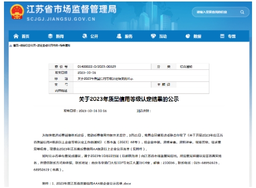 “江蘇省工業(yè)企業(yè)質(zhì)量信用評價”是省市場監(jiān)管局、省發(fā)改委強化質(zhì)量誠信體系建設(shè),發(fā)揮質(zhì)量信用在助推高質(zhì)量發(fā)展、創(chuàng)新監(jiān)管機制方面的基礎(chǔ)性作用工作。自2011年起每年評定一次,經(jīng)企業(yè)申報、資格審查、資料評審、現(xiàn)場答辯、征求意見等程序,獲評企業(yè)在質(zhì)量管理體系、質(zhì)量保證能力、卓越績效實施情況、質(zhì)量競爭力等方面均有優(yōu)秀表現(xiàn)。