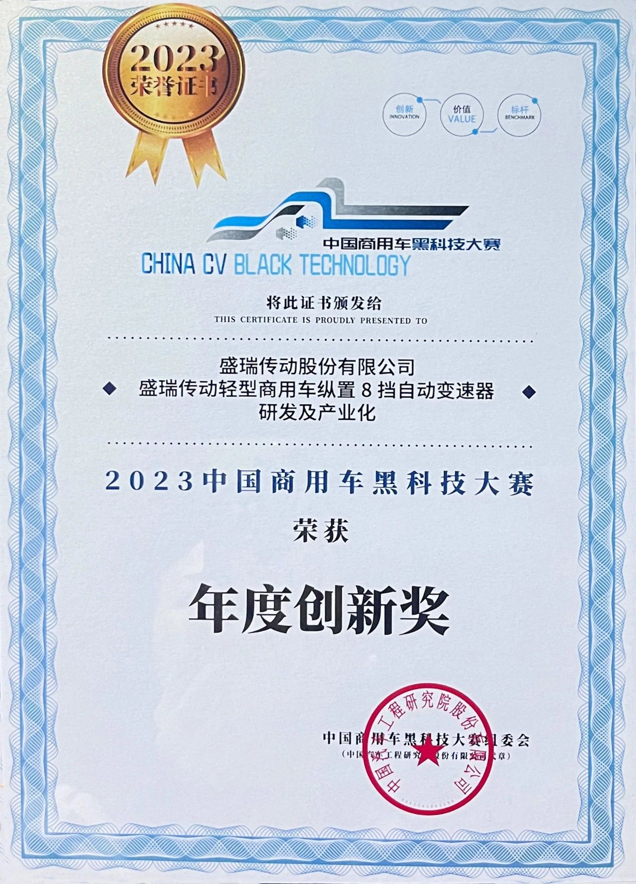 盛瑞傳動榮獲2023中國商用車黑科技大賽“年度創新獎”