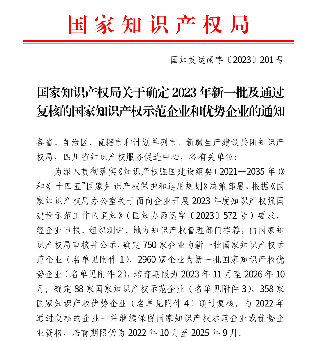 此榮譽是國家對企業(yè)知識產(chǎn)權創(chuàng)造、運用、保護、管理等方面工作突出授予的最高評價之一。
