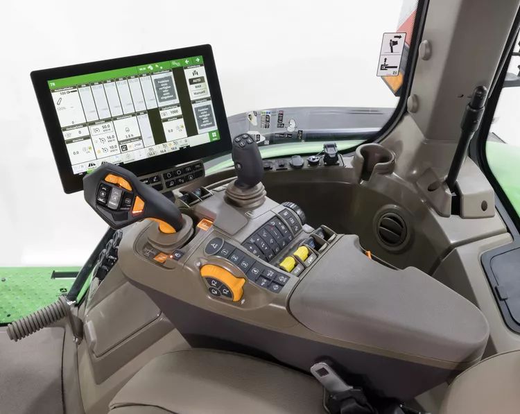 所有拖拉機的駕駛室內都添加了一個新的右側角柱顯示器。顯示屏具有數字讀數和插圖區域,以幫助確保這些拖拉機能夠利用可用的高級功能。約翰迪爾 CommandView 4 駕駛室還可以使用工廠安裝的后窗著色裝置。