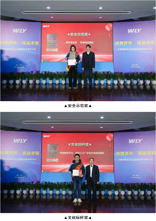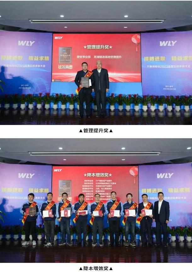 春天播下希望的種子,勤奮澆灌美好的未來。2月25日上午,浙江萬里揚股份有限公司2023年度總結表彰大會在萬里揚金華基地隆重召開。萬里揚董事長黃河清作題為《堅定文化自信 深化產業變革 加快制造升級 鑄就持久競爭優勢與持續增長動能》的重要講話。萬里揚集團總裁吳月華、萬里揚股份公司總裁顧勇亭、萬里揚集團黨委書記張雷剛等領導出席會議。顧勇亭總裁作股份公司2023年度經營管理工作報告。萬里揚股份公司副總監章建輝主持會議。