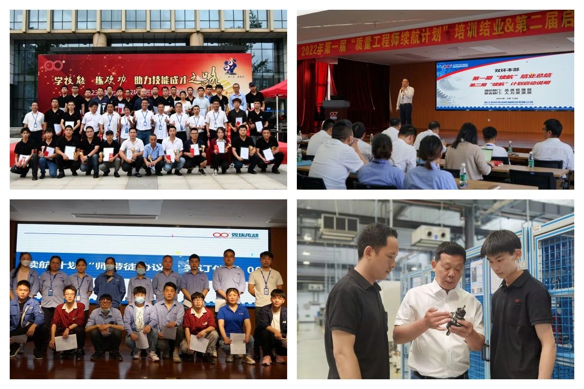 同時,雙環傳動高度重視工匠精神的傳承,一方面通過開展雙環工匠評選,弘揚工匠文化,鼓勵雙環工匠在著力打造雙環品牌的同時成就自身價值;一方面秉承“德才兼備,以德為先;知人善任,人盡其才”的人才發展理念,積極打造師帶徒傳承文化,充分調動內外部培訓資源,推進全員師帶徒機制建立。通過人力資源、技術等部門的合作,積極推進工匠傳承培養機制,實現技藝傳承,搭建起學習交流、資源共享、合作發展、成果展示“四大平臺”。