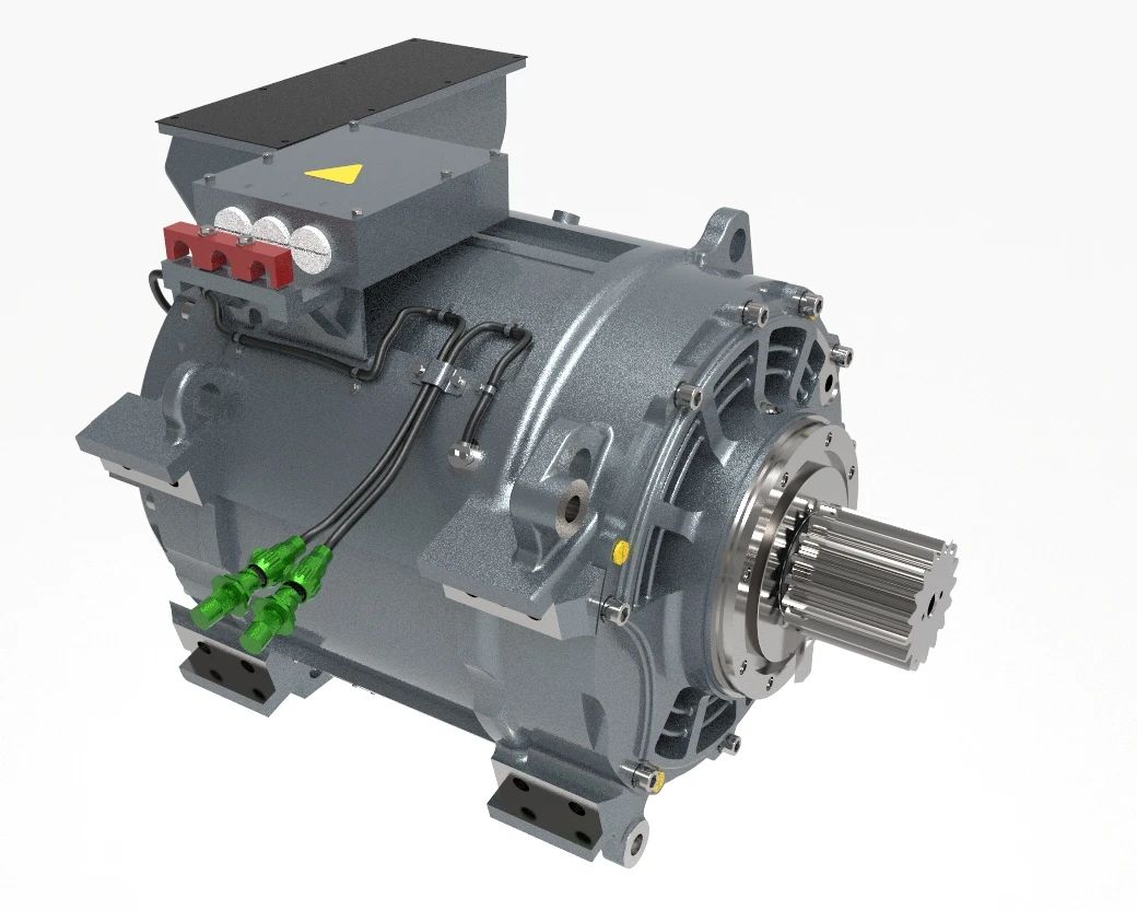 中車株洲電機公司牽引電機研發團隊秉承“市場導向,技術引領”的研發理念,運用成熟可靠技術平臺,對牽引電機進行優化設計。該款YQ-408牽引電機滿足設計時速100km/h,額定功率408kW、起動轉矩超過10000N·m、低速持續點效率達91.6%,可助力整車實現平直道牽引10000t、4‰坡道牽引5000t的要求,同時可降低整車能耗、提升整車續航能力。