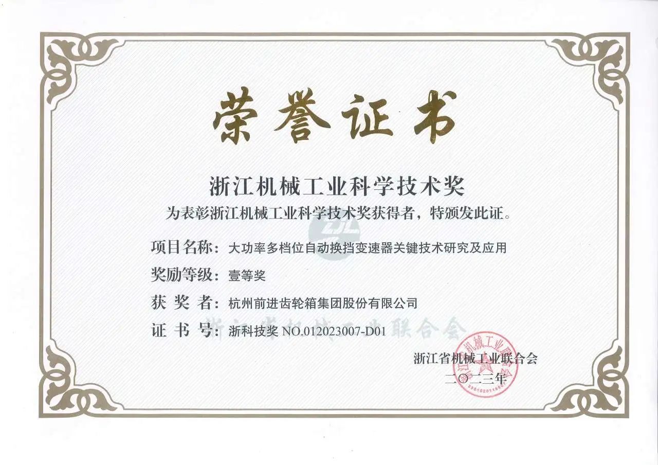 近日,備受矚目的2023年度浙江機械工業科學技術獎評審工作圓滿結束,杭齒集團兩個項目分別榮獲該年度浙江機械工業科學技術壹等獎和叁等獎,展現了卓越的技術研發實力。