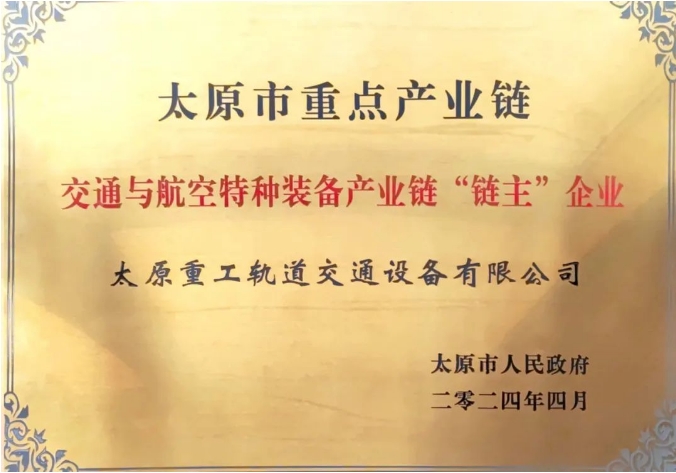 軌道公司憑借卓越的業績和突出的貢獻,成功榮膺本年度太原市產業鏈鏈主企業稱號!這一榮譽的獲得,既是太原市政府對太重軌道公司在產業鏈推動工作中取得成績的肯定和鼓勵,更是對公司引領帶動太原市交通與航空特種裝備產業鏈高質量發展的期望與激勵。鏈主企業,是指在一個產業鏈中,能夠對上下游企業發揮引領帶動作用,促進產業協同發展的領軍企業。作為一家具有強大實力和影響力的車輪、車軸、齒輪箱和輪對等鐵路核心走行部件設計、制造和檢修企業,公司緊緊圍繞太重集團實現新型工業化關鍵任務,積極發揮行業引領作用,全方位推動產業鏈高質量發展。自成立以來,公司始終堅持以創新驅動、質量至上、服務立身理念,不斷提升企業核心競爭力。通過引進先進技術、優化生產流程、提高產品質量,打造出一系列高品質的軌道交通產品,為產業鏈的繁榮發展作出了積極貢獻。同時,公司還加強與上下游企業的合作,探討產業發展新模式,推動產業協同創新,實現共贏發展。榮譽的背后,是軌道公司全體職工辛勤付出和不懈努力的結果,同時也得益于廣大合作伙伴和用戶的鼎力支持。未來,公司將全面落實鏈長辦工作部署,以新型工業化為統領,加快培育新質生產力,堅定扛起“鏈主”企業責任,充分發揮“一企帶一鏈,一鏈成一片”的引領帶動作用,持續為產業鏈向更高層次更寬領域邁進貢獻太重力量。