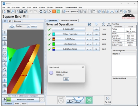 I3dg 改進(jìn):ANCA 增強(qiáng)了 I3dg 功能,可在機(jī)床上進(jìn)行快速比較刀具的細(xì)微變化。該軟件還提供更改后直接測(cè)量功能,提供無縫驗(yàn)證工藝控制。