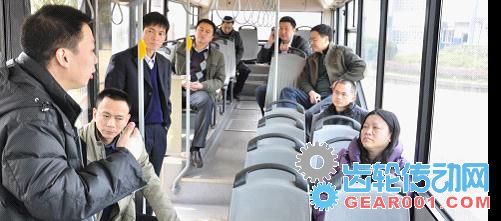 上海申龍客車(chē)有限公司副總經(jīng)理賴(lài)雪鳳和廈門(mén)金龍旅行車(chē)有限公司副總經(jīng)理陳篤廉一行在試乘我公司AMT變速器試驗(yàn)客車(chē)中聽(tīng)取我公司有關(guān)專(zhuān)家講述AMT變速器的性能概況。