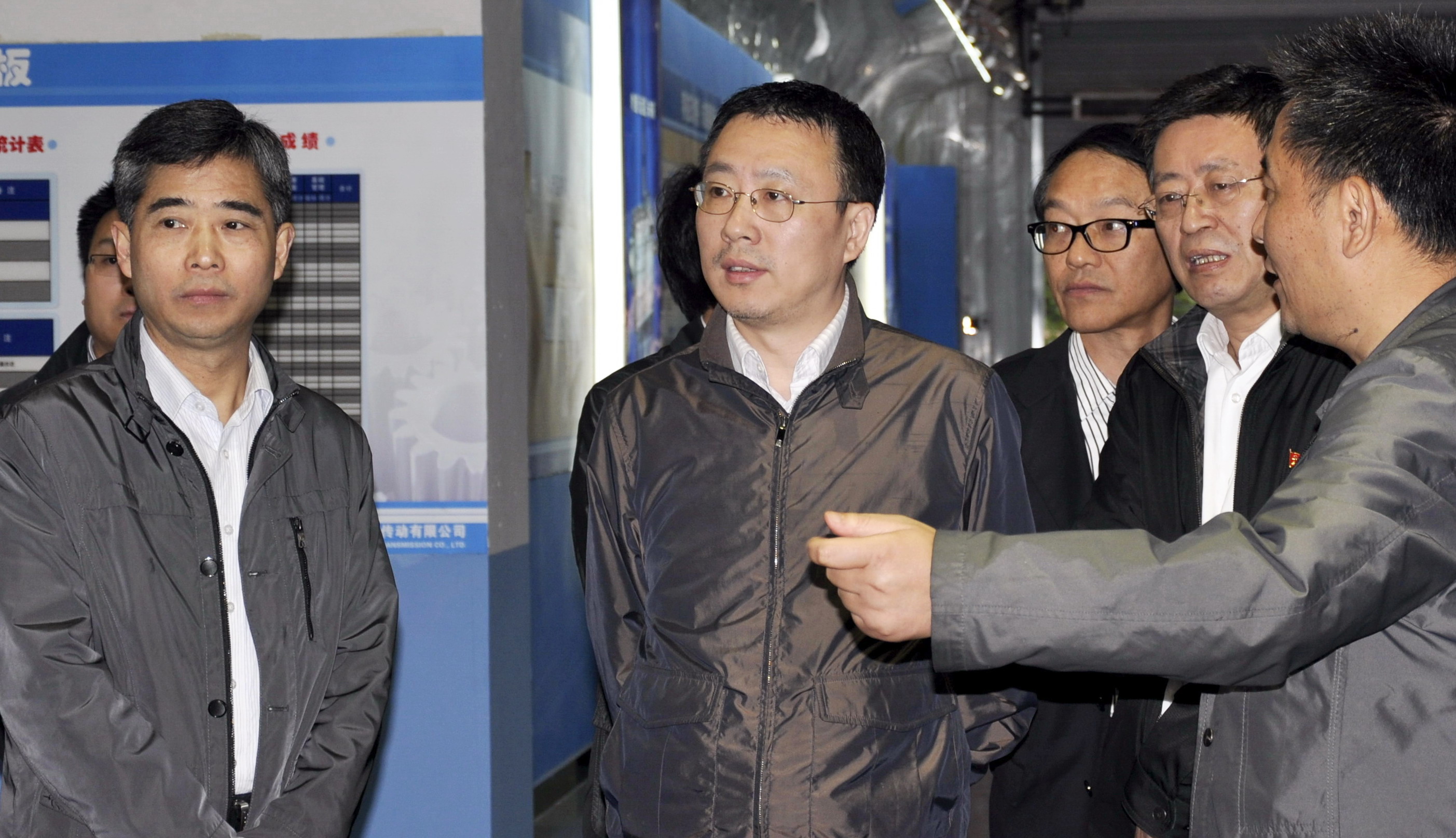綦齒傳動公司董事、工會主席陶劍,董事會秘書、總經理助理余相勤,總經理助理馬飛躍,該公司監事、監察審計室主任文明芳等陪同楊一行調研和參觀了綦齒傳動公司總裝分廠生產場和該公司展廳。圖為重慶市國資委監事辦副主任楊一在該公司總裝分廠參觀。(文/圖張紹國)