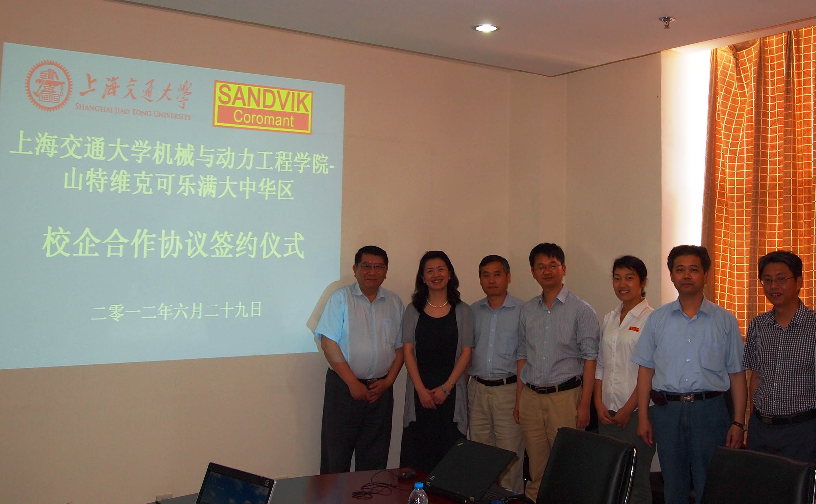 2012年6月29日上午,上海交通大學(xué)機(jī)械與動(dòng)力工程學(xué)院和山特維克可樂(lè)滿大中華區(qū)校企合作協(xié)議正式簽署。出席簽約儀式的嘉賓有山特維克可樂(lè)滿大中華區(qū)市場(chǎng)與業(yè)務(wù)總監(jiān)彭曉鴻女士、上海交通大學(xué)機(jī)械與動(dòng)力工程學(xué)院黨委書記陶燕敏先生、副院長(zhǎng)劉應(yīng)征先生、陳明教授和制造技術(shù)與裝備自動(dòng)化研究所的師生們。