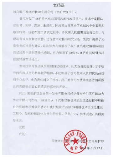 國能浙江北侖電廠6#機(jī)組兩臺套大功率引風(fēng)機(jī)機(jī)組的汽電雙驅(qū)技術(shù)改造項(xiàng)目是浙江省重點(diǎn)民生工程,原機(jī)組始建于2008年,其技術(shù)無法滿足目前的環(huán)境排放及節(jié)能指標(biāo)要求,哈爾濱廣瀚動力傳動有限公司憑借多年技術(shù)經(jīng)驗(yàn),提出采用行星變速離合器對原引風(fēng)機(jī)進(jìn)行汽電雙驅(qū)改造并為電廠行星變速離合器及膜盤聯(lián)軸器進(jìn)行供貨。該項(xiàng)目自2023年10月獲得合同輸入以來,項(xiàng)目團(tuán)隊(duì)秉承嚴(yán)謹(jǐn)、穩(wěn)重、高效的工作態(tài)度,歷時7個月,高效完成了設(shè)備供貨,并在1個月內(nèi)先后成功完成6#機(jī)組A機(jī)、B機(jī)兩臺套風(fēng)機(jī)系統(tǒng)的調(diào)試工作。