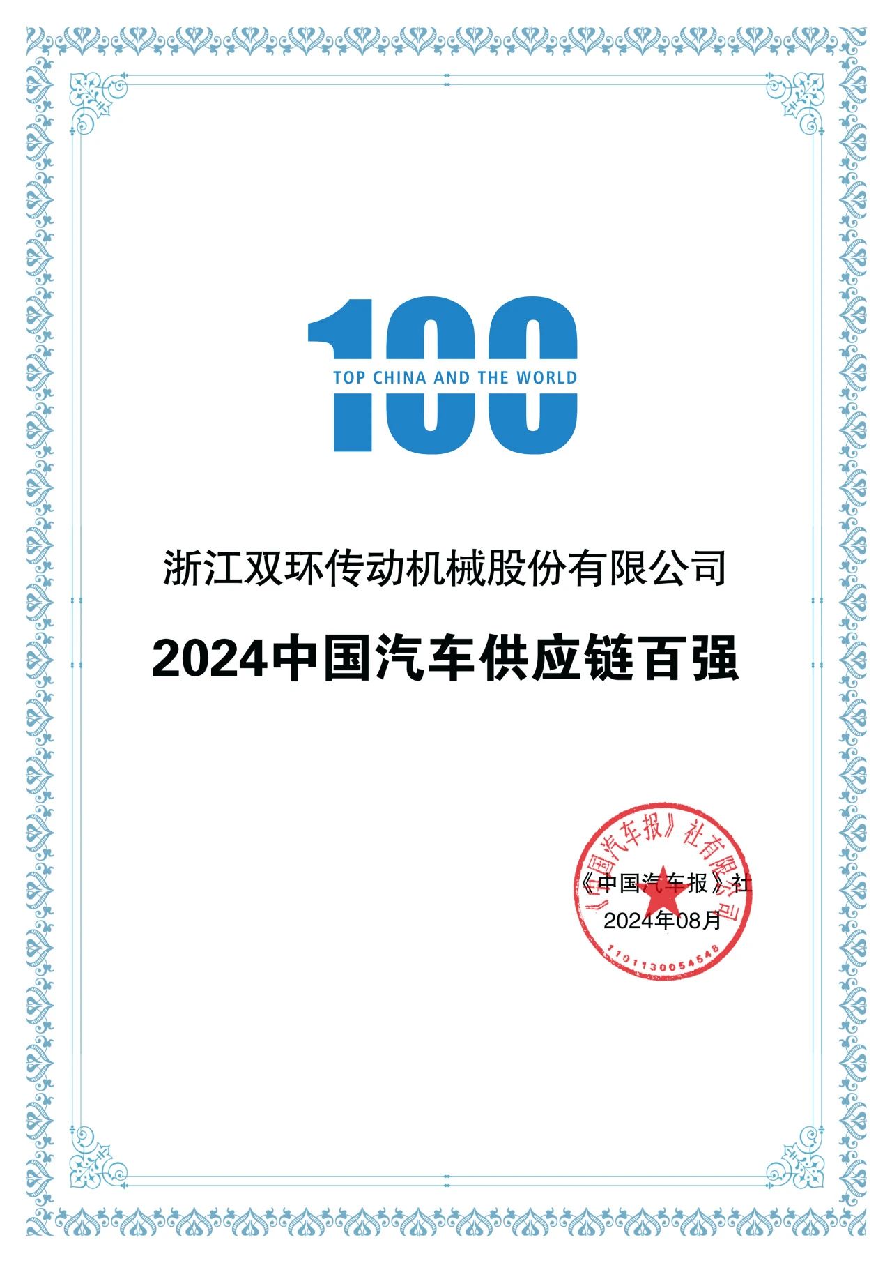 近日,由《中國汽車報(bào)》社和羅蘭貝格聯(lián)合編制的《2024全球汽車供應(yīng)鏈核心企業(yè)競爭力白皮書》正式發(fā)布,揭曉了2024中國汽車供應(yīng)鏈百強(qiáng)榜單,雙環(huán)傳動(dòng)榮登榜單。這是雙環(huán)繼2023年獲得該項(xiàng)殊榮后再度登榜。