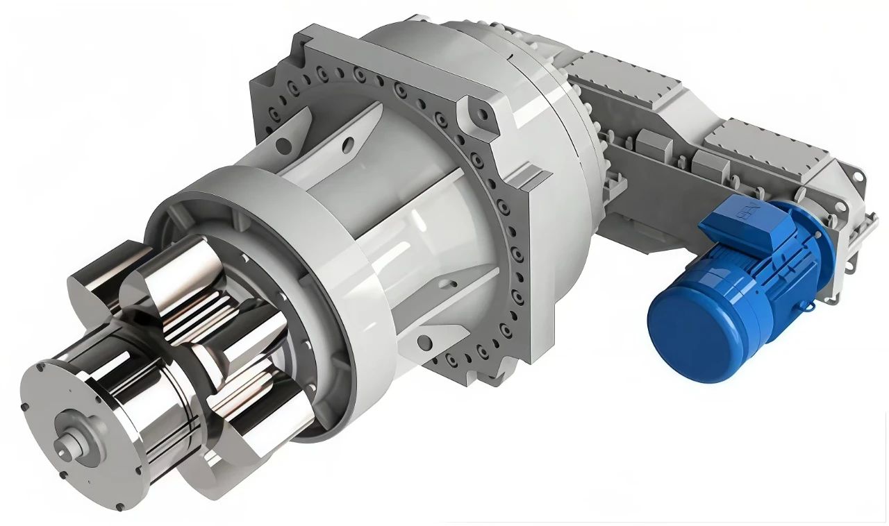 該型號升降單元齒輪箱采用多級平行及行星級的混合減速傳動技術,實現速比超7000、最大輸出扭矩超2500千牛米的低速重載傳動。產品具有結構對稱,互換性強,承載能力大,可靠性高等特點,可廣泛應用于風電安裝船、多功能海洋生活平臺、海上鉆井平臺等。