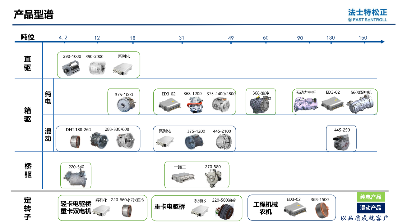 法士特松正公司作為實(shí)現(xiàn)集團(tuán)公司“4321”戰(zhàn)略目標(biāo)的重要支撐之一,是西北地區(qū)集研發(fā)、制造、營銷、服務(wù)為一體的電驅(qū)動系統(tǒng)綠色產(chǎn)業(yè)實(shí)體,產(chǎn)品覆蓋中央式驅(qū)動、電驅(qū)橋、P2混動、DHT混動、增程式混動等多個領(lǐng)域。截至2024年二季度,法士特松正電機(jī)市場占比達(dá)到16.07%,穩(wěn)居行業(yè)前列。據(jù)統(tǒng)計(jì),目前搭載法士特松正扁線電機(jī)的車輛在全國50多個城市運(yùn)營情況良好,最長運(yùn)行里程超過30萬公里,累計(jì)里程達(dá)10億公里以上。