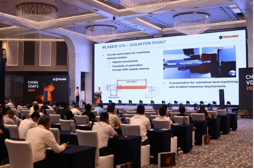 2024年9月20日,江蘇太倉——全球領先的工具加工機床制造商孚爾默(VOLLMER)集團,在其位于江蘇太倉的生產基地舉辦了大型的技術開放日,這是集團延續數年、極具盛譽的技術交流活動VOLLMER VDays再度來到中國,以此盛會慶祝孚爾默在華二十周年。VOLLMER China VDays以技術演講、機床演示、典型工具切削等豐富形式全面展現了孚爾默產品技術與本地應用實力,同時還攜手制造生態合作伙伴企業,深度聚焦工具全工藝鏈加工方案。活動吸引了用戶企業代表、合作伙伴、研究機構專家等約130名嘉賓交流參與。