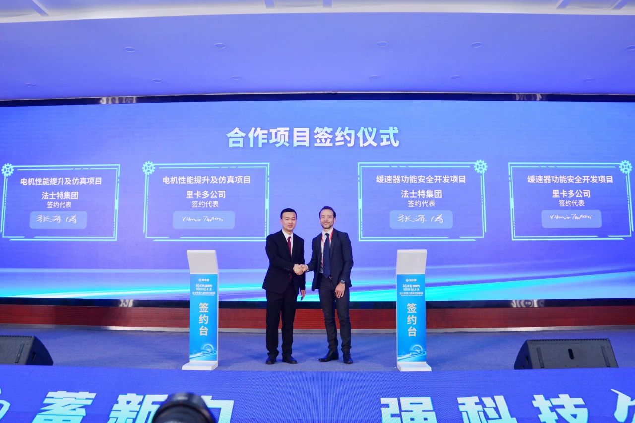 里卡多中國區總工維托里奧·滕托里先生與法士特集團副總工程師、研究院副院長張海濤,分別代表雙方企業在電機性能提升及仿真項目、緩速器功能安全開發項目的合作協議上簽字。張海濤還作了《調結構蓄新力 強科技創未來》主題報告。