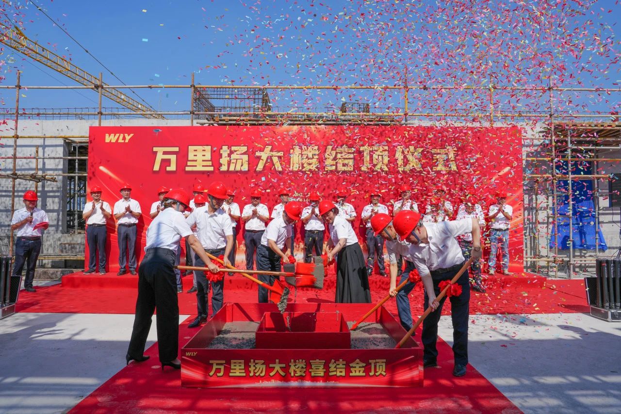 紅幅悅動,金字耀目。10月21日上午,萬里揚大樓結頂儀式在項目現場隆重舉行,萬里揚集團董事長黃河清、集團總裁吳月華、股份總裁顧勇亭等來自集團公司、股份公司的相關領導出席此次活動,共同見證這一重要時刻。儀式由萬里揚集團黨委書記張雷剛主持。
