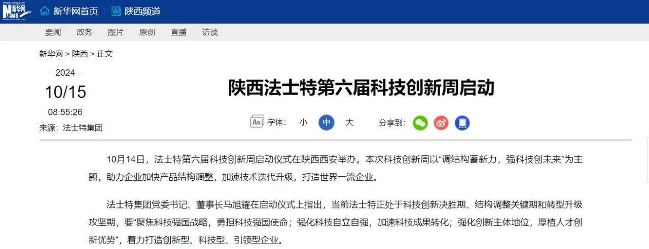 10月14日,法士特第六屆科技創(chuàng)新周啟動儀式在陜西西安舉辦。本次科技創(chuàng)新周以“調(diào)結(jié)構(gòu)蓄新力,強科技創(chuàng)未來”為主題,助力企業(yè)加快產(chǎn)品結(jié)構(gòu)調(diào)整,加速技術迭代升級,打造世界一流企業(yè)。