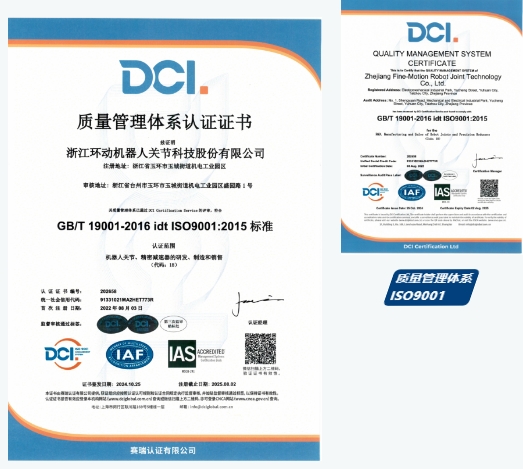 ISO9001質量管理體系認證的核心在于科學的質量管理和質量保證方法。這次認證的復審通過,表明環動科技具備持續、穩定的為客戶提供高精度和高可靠性的機器人關節減速機產品能力,提高客戶滿意度。