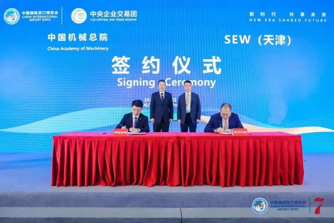11月6日,在第七屆中國國際進(jìn)口博覽會(huì)現(xiàn)場,中國機(jī)械總院與SEW(天津)簽署戰(zhàn)略合作協(xié)議。雙方將在電動(dòng)機(jī)、減速機(jī)和變頻控制設(shè)備等領(lǐng)域的技術(shù)合作及產(chǎn)業(yè)推廣尋求更廣闊的合作。