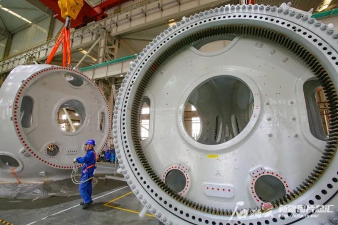 據介紹,中船海裝風電有限公司開發的10兆瓦陸上風力發電機組,具有高經濟性、高可靠性、高發電量、高環境適應性等特點,在裝配過程中已經通過了全功率測試實驗,在滿發風速下,機組運行一年可發電近4000萬度,相當于節約標準煤約1.2萬噸,減排二氧化碳2.8萬噸,大風機的量產為“碳達峰”和“碳中和”注入了持續動力。