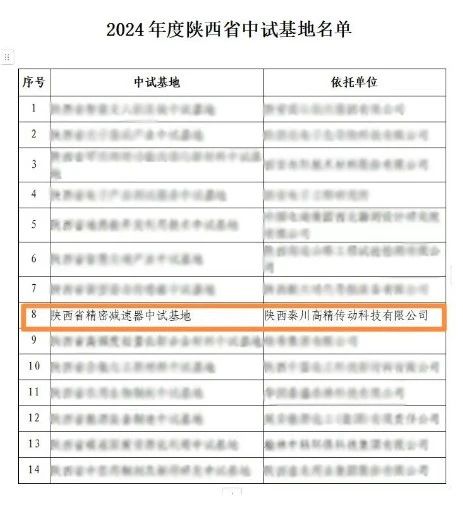 近日,陜西省科學技術廳公布了2024年度概念驗證中心和中試基地認定名單,集團所屬秦川高精傳動公司正式被認定為2024年陜西省精密減速器中試基地。這一殊榮不僅是對該公司在工業機器人減速器技術領域研發實力的認可,也標志著該公司在推動科技成果轉化、加速產業升級方面邁出了堅實的一步。