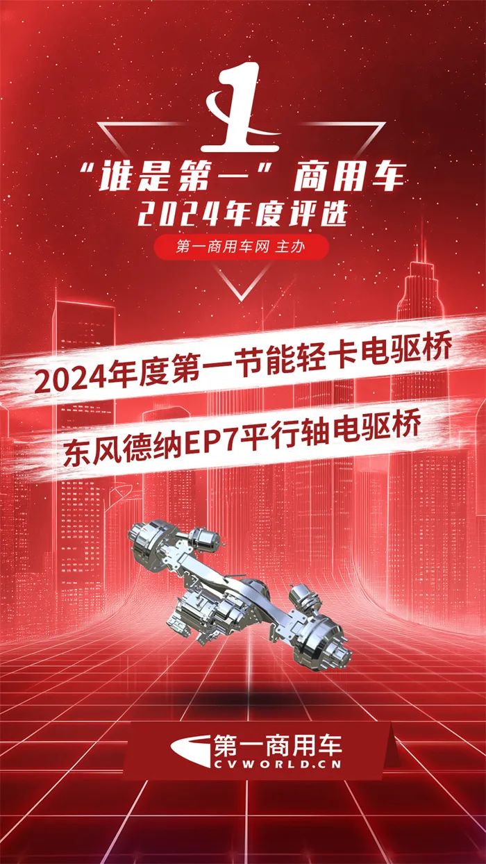 一年一度的“誰是第一”商用車年度評選活動由第一商用車網、卡車空間站和皮卡空間站聯合主辦,已發展成為商用車行業盛會。該活動以“為中國智造加油”為初衷,致力于以專業、嚴謹的態度打造有影響力的平臺,發掘商用車行業中的優秀品牌,樹立標桿企業,推動行業健康發展。東風德納本次榮獲“2024年度第一節能輕卡電驅橋”大獎,再次印證了東風德納在電驅橋領域強大的研發實力和商用車車橋領域的領軍地位。