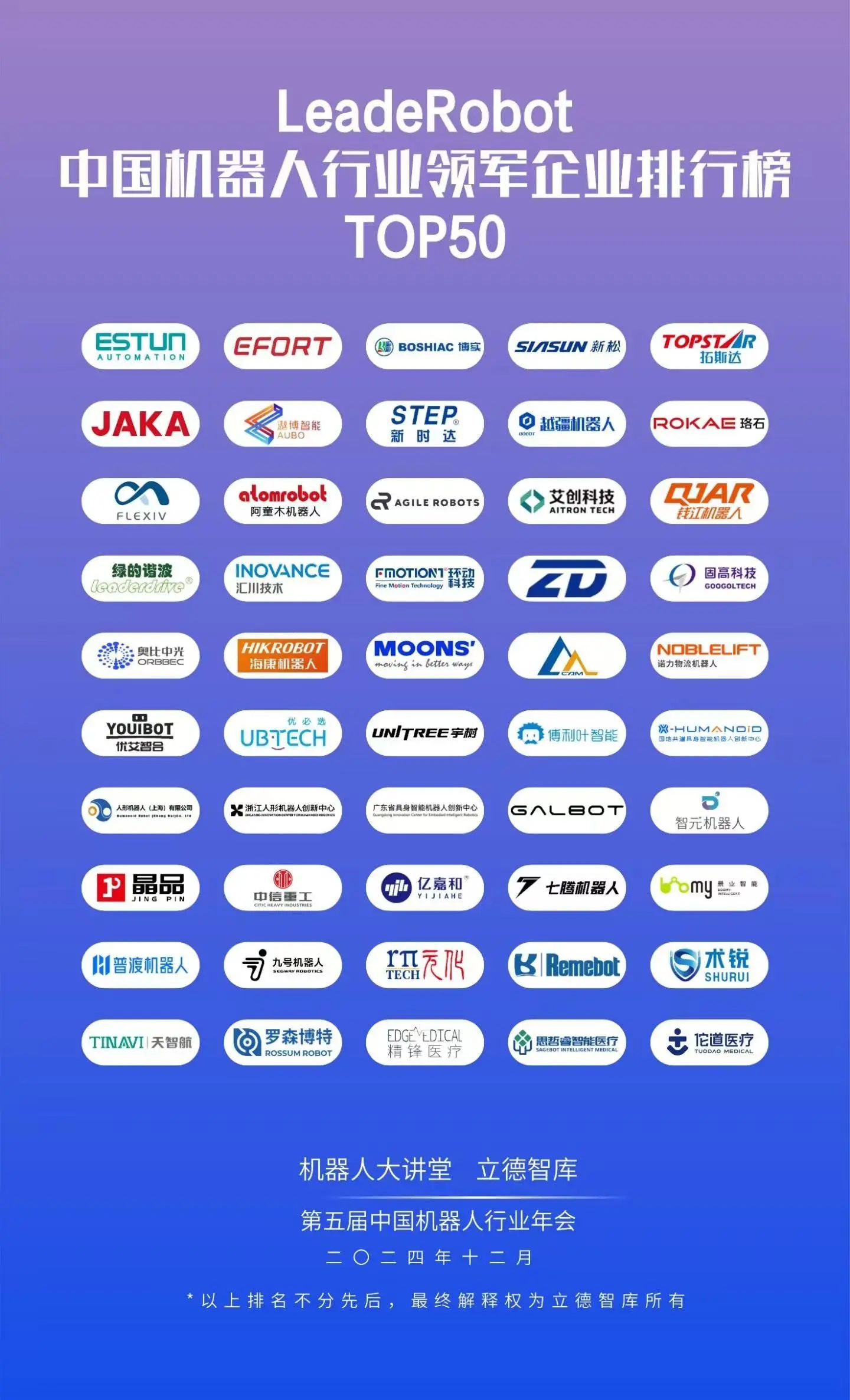 環動科技憑借在減速機領域的領先優勢,榮膺“Leaderobot2024年度機器人減速器技術突破獎”并入圍“LeadeRobot中國機器人行業領軍企業排行TOP50”