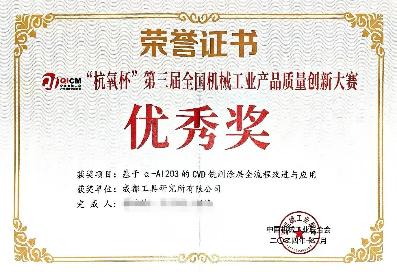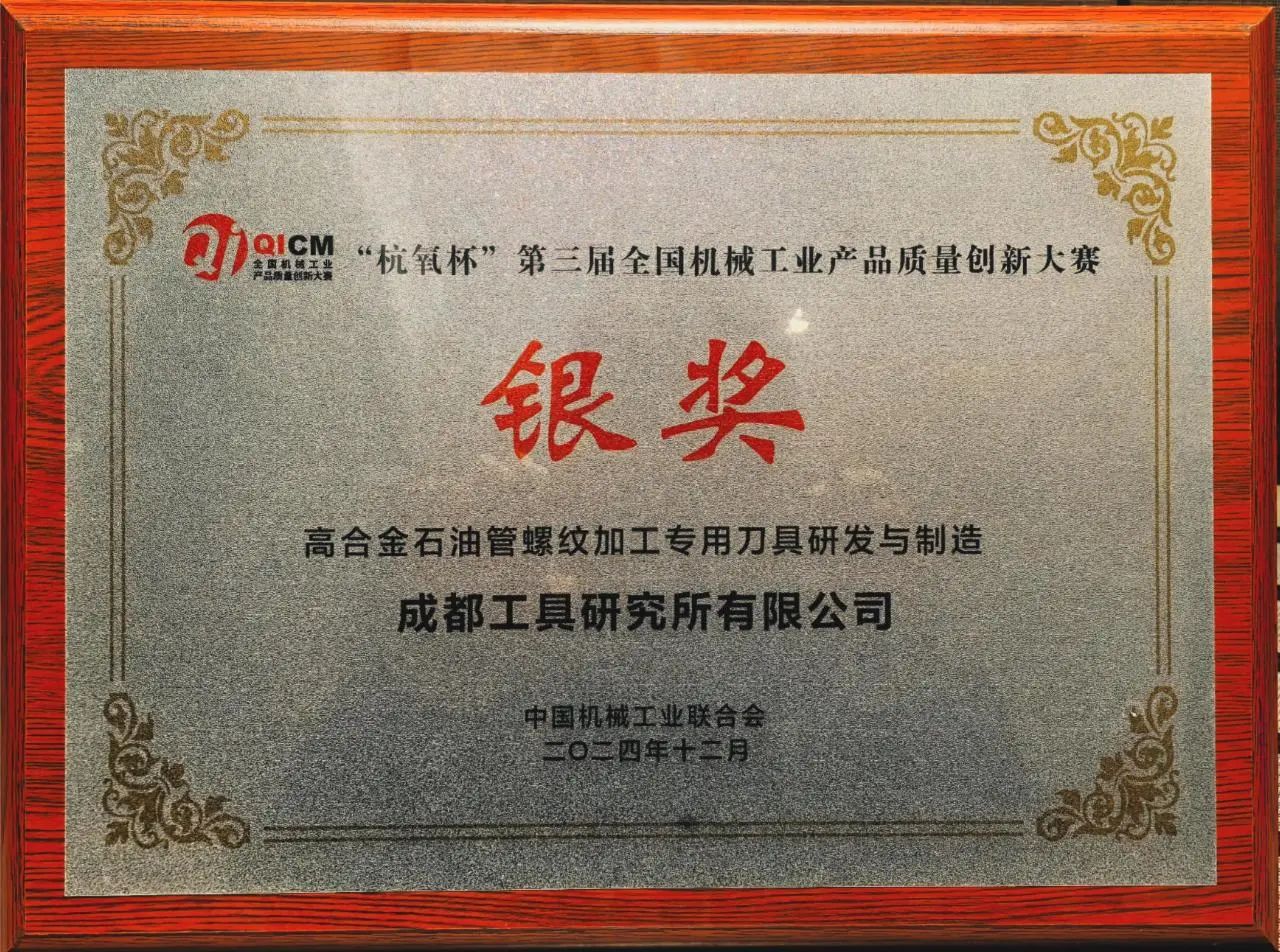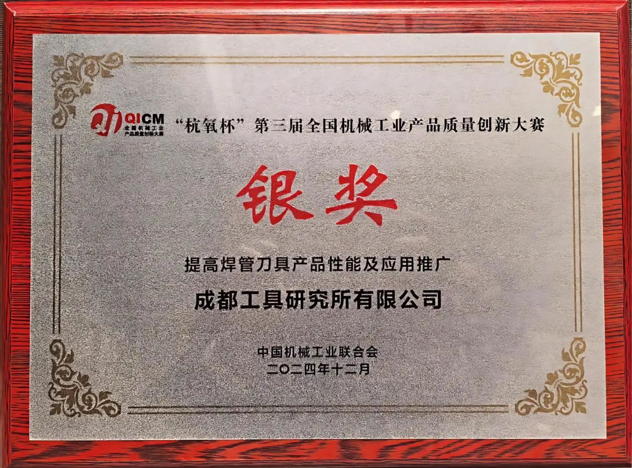 經大賽評審委員會組織行業專家進行初賽評審、協會復審、決賽評審,成都工具研究所在主題為“夯實質量根基 鑄就工研品質”的質量月活動期間提交的參賽項目,最終獲得了優異成績:數控刀具事業部的“提高焊管刀具產品性能及應用推廣”、特種刀具事業部的“高合金石油管螺紋加工專用刀具研發與應用”兩個項目雙雙榮膺銀獎,涂層技術事業部的“基于α-Al2O3的CVD銑削涂層全流程改進與應用”項目獲得優秀獎。以上殊榮不僅是對成都工具研究所過去產品質量提升和技術創新工作的認可,更是對未來持續努力的褒獎。