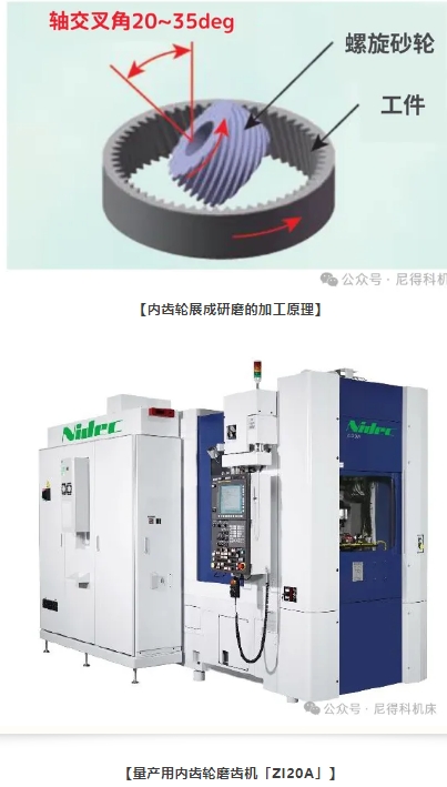 加工機:本公司于 2009 年開售的量產用內齒輪磨齒機( ZI20A),可應對內齒輪的量產需求,對內齒輪進行高精度加工。