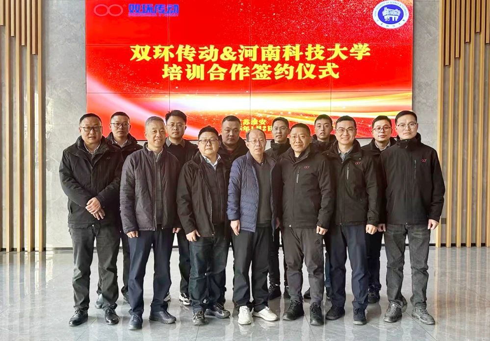 在當今快速發展的時代,校企合作已成為推動教育進步與產業發展的重要力量。1月2日,河南科技大學機電學院魏冰陽、楊建軍、蔣闖三位教授蒞臨江蘇雙環,并與江蘇雙環簽訂《高端齒輪制造技術能力提升》技術服務合作協議。江蘇雙環總經理聞靈浩、常務副總經理盧浩,集團人資文化部長陳文峰,江蘇雙環技術部部長王力及相關管理干部等出席簽約儀式。此次簽約標志著江蘇雙環與河南科技大學開啟了校企合作的新篇章。