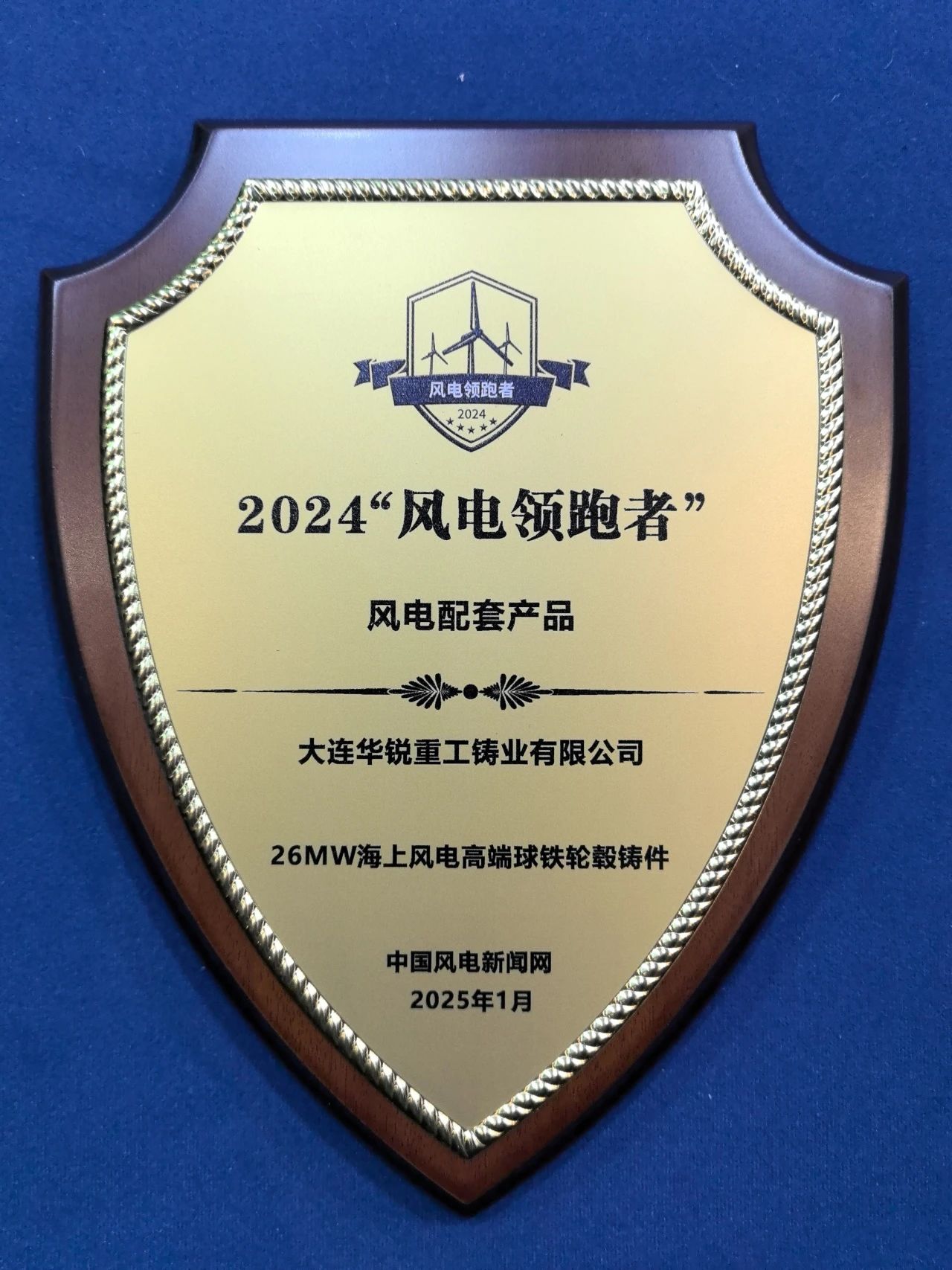 大連重工下屬鑄業公司研制的26MW海上風電高端球鐵輪轂鑄件榮獲 “2024年風電領跑者最佳零部件產品獎”。