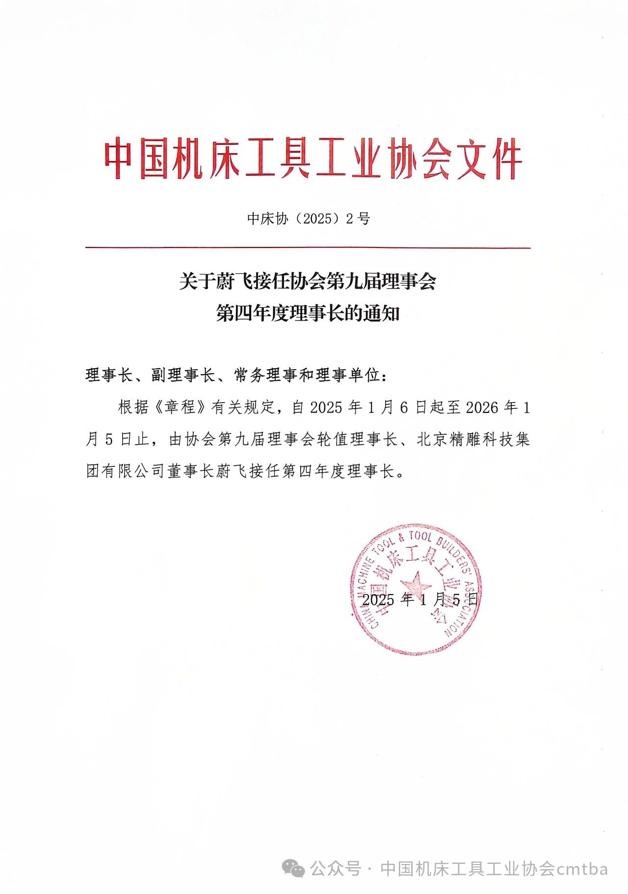 精雕集團(tuán)董事長蔚飛接任中國機床工具工業(yè)協(xié)會第九屆理事會第四年度理事長