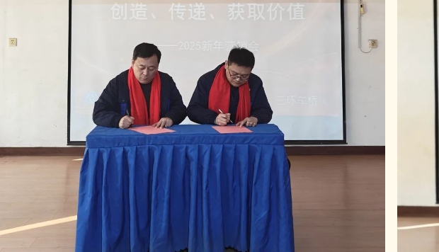 2025年2月3日,三環車橋召開以“創造、傳遞、獲取價值”為主題的新年營銷會,會議在雄壯激昂的國歌聲中隆重開場。公司高管、中層干部、國際國內營銷將士等70余人參加了大會,會議由銷售總監、銷售公司總經理胡培翔主持。