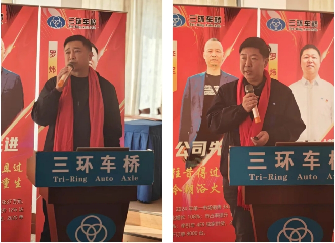 會上,銷售總監胡培翔作國內市場總結報告。對2025年市場工作,提出將堅持聚焦重卡前六、進軍輕卡前五、夯實專用車前三的653市場布局,發布軸市場1234、橋市場1354、行業外234行動計劃。
