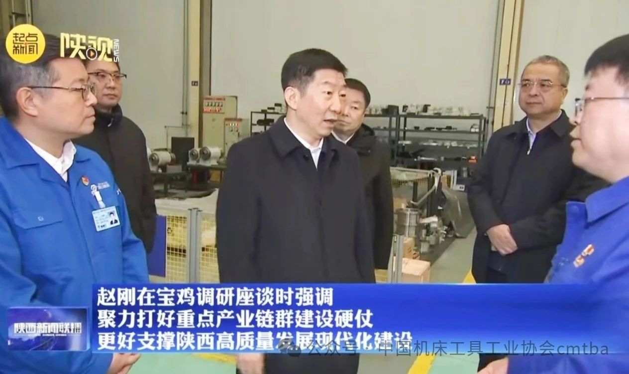 2025年2月7日,陜西省省長趙剛到寶雞機床集團有限公司調研。省人大常委會副主任、寶雞市委書記楊廣亭,省政府副秘書長曹源,省發展改革委主任孫喜民,省工業和信息化廳廳長韓宏琪,寶雞市市長王勇等省市相關負責人陪同調研。集團公司黨委書記、董事長李清耀匯報了企業生產經營、產品研發、市場開拓、“兩化”融合、重點項目和產業鏈建設等情況。