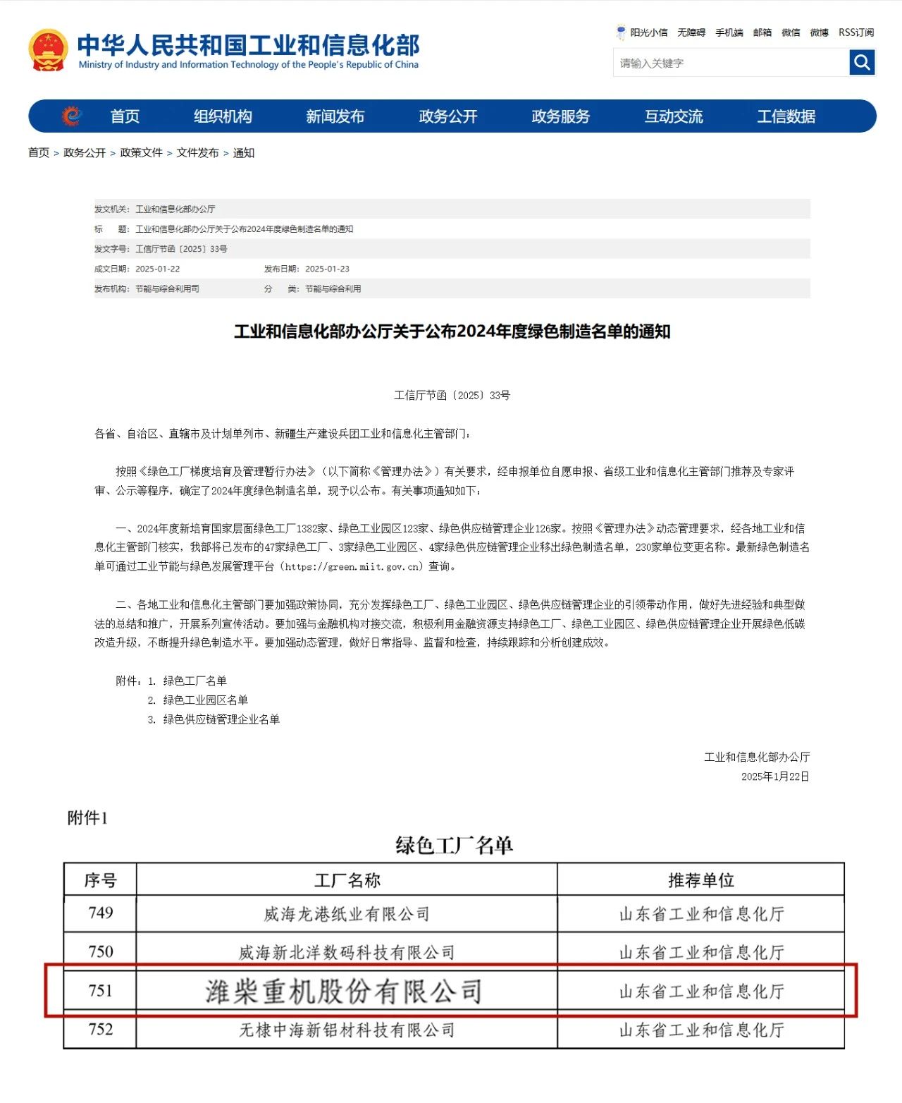 近日,工業(yè)和信息化部公示了2024年度綠色制造名單,濰柴重機憑借在綠色制造、節(jié)能降碳、資源循環(huán)利用等領域的突出表現,成功獲評國家級“綠色工廠”。此前,濰柴動力、陜重汽、法士特、漢德車橋、濰柴雷沃智慧農業(yè)、濰柴火炬科技等接連成功入選國家級“綠色工廠”。