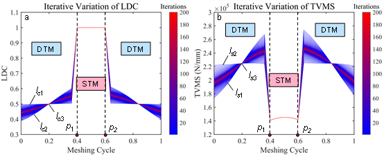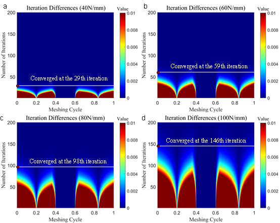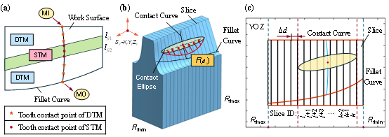 莫帥教授團(tuán)隊(duì)提出了一種創(chuàng)新的面齒輪副時(shí)變嚙合剛度迭代計(jì)算方法,該方法基于齒面切片分析與勢(shì)能法的耦合,通過(guò)精確計(jì)算面齒輪在工作狀態(tài)下的齒面形變,并采用迭代算法優(yōu)化計(jì)算參數(shù),從而實(shí)現(xiàn)了對(duì)面齒輪副時(shí)變嚙合剛度的精確求解。該研究成果為齒輪傳動(dòng)領(lǐng)域提供了一種高效且精確的計(jì)算方法,顯著提升了嚙合剛度計(jì)算的精度與效率,為面齒輪副傳動(dòng)系統(tǒng)的服役性能優(yōu)化提供了關(guān)鍵技術(shù)支持與理論依據(jù)。