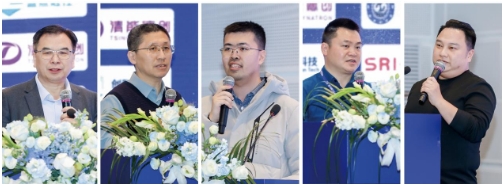 從左至右依次為:無錫巨蟹智能驅動科技有限公司合伙人邵暉,辰星(天津)自動化設備有限公司董事長劉松濤,清能德創電氣技術(北京)有限公司副總經理湯小平,南京航空航天大學教授戴振東。