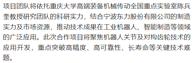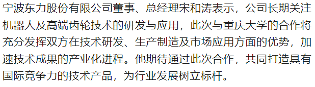 重慶大學與寧波東力攜手共促機器人關節及對構齒輪技術應用開發