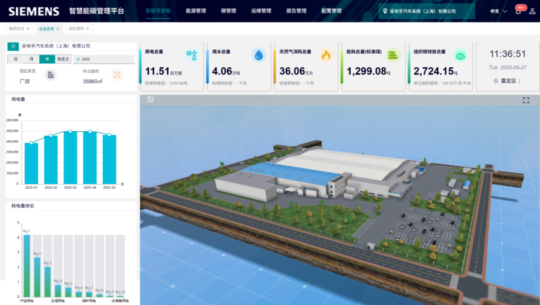 基于自身成熟的技術和平臺,西門子詳細采集和分析采埃孚汽車系統(上海)有限公司的各種數據,提出個性化的低碳改造解決方案。