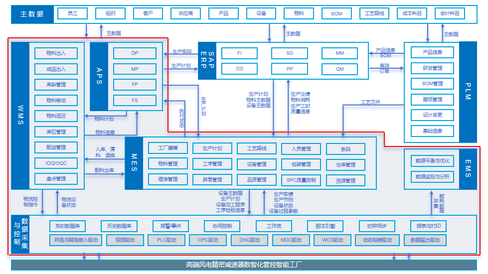 “高端風電精密減速器數智化智能工廠”總投資6億元,占地面積138畝,總建筑面積6萬余平米,通過信息技術與制造業的深度融合,實現了從工廠建設、產品研發到模式創新的11個智能制造環節和19個智能制造場景全面覆蓋。全工廠實現5G網絡全覆蓋,對所有智能化設備進行聯網及通訊,引入AI工具優化開發流程,部署數字孿生技術,構建了從設備到園區的全維度數字化映射,顯著提升了生產協同效率。通過運用MES、SAP系統構建智能排程,實現多工序聯動排產與資源動態調配,大幅增強生產柔性化能力,打造激光+視覺導航AGV小車廠區無人物流、WMS智能倉儲系統和可視化集控調度計劃管控中心,實現生產數據智能管理。